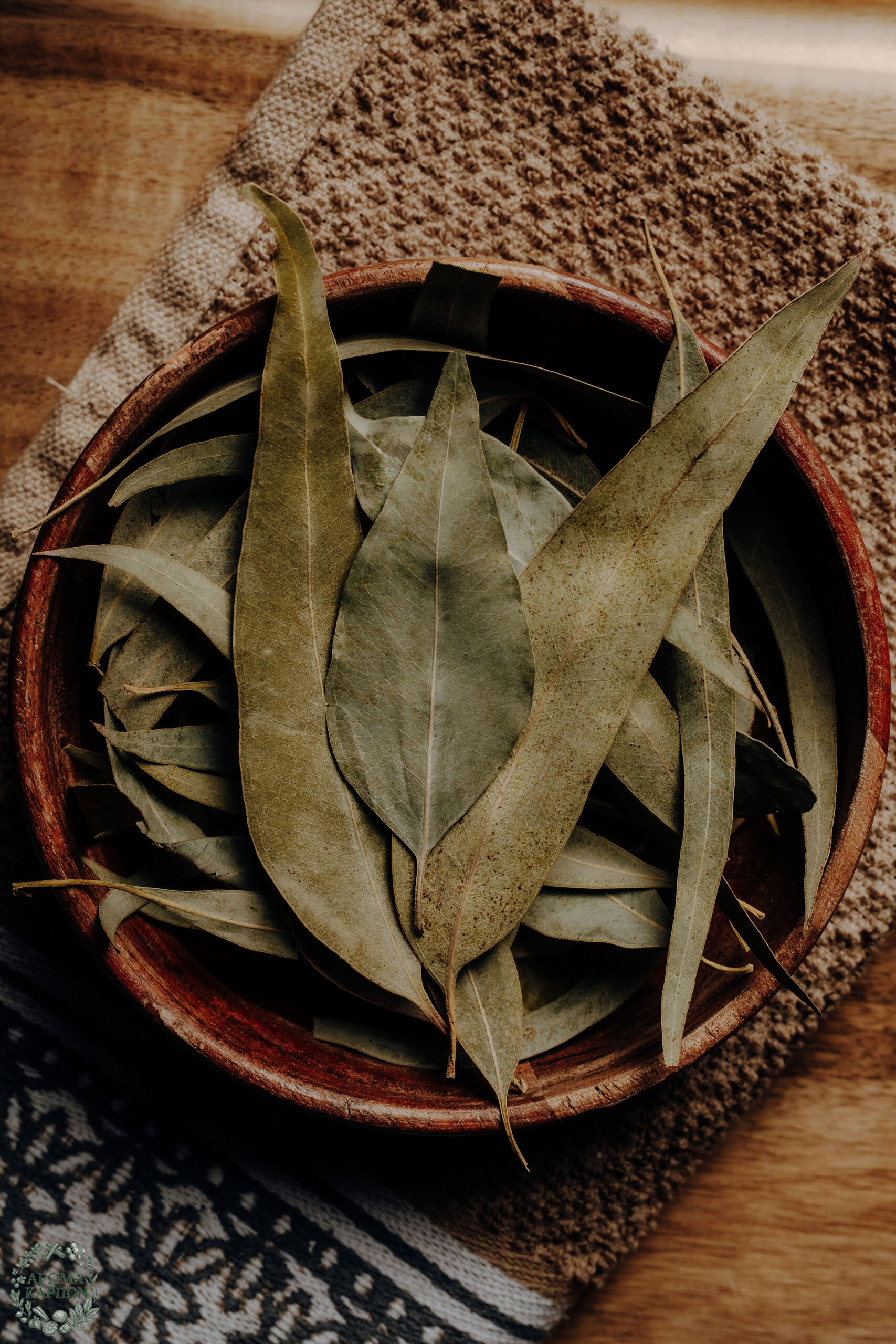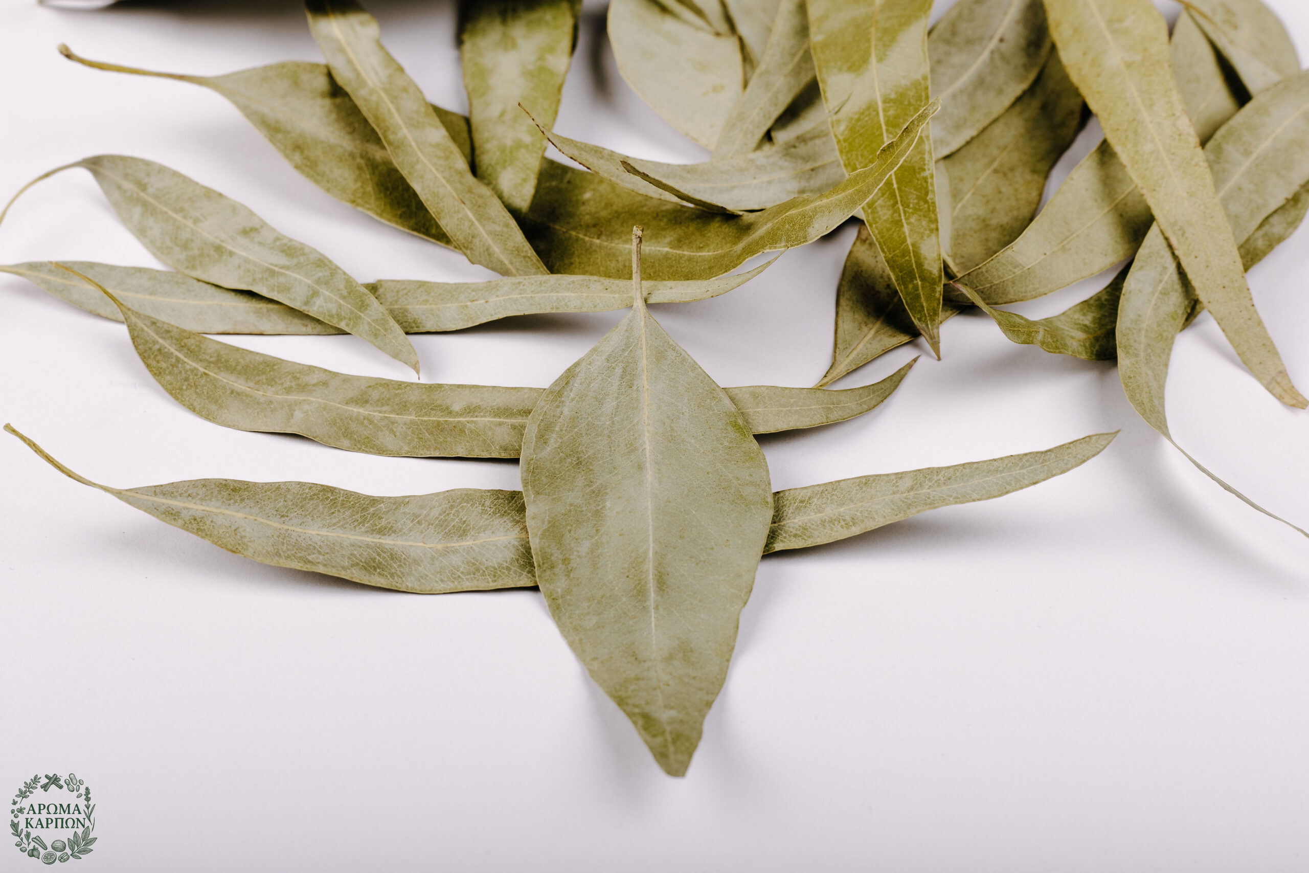 Αποξηραμένα φύλλα ευκαλύπτου, κατάλληλα για παρασκευή αφεψήματος με έντονο, καθαρό άρωμα.